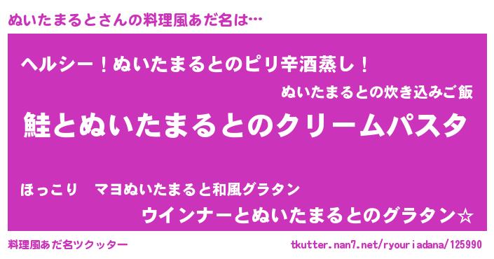 | 男性向けラノベタイトル風あだ名 | 『ノーゲーム・ノーヌイタマルト』 |