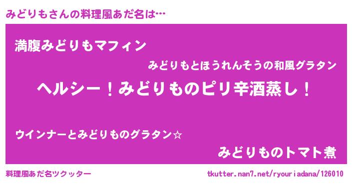 | ヘコむあだ名 | 『みどりも(苦笑)』『牛乳』 |