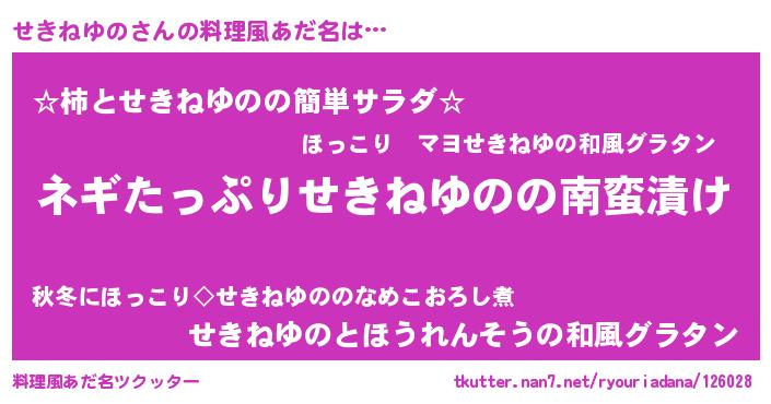 | 意味不明あだ名 | 『ペロリンせきねゆの』『自称せきねゆの』 |