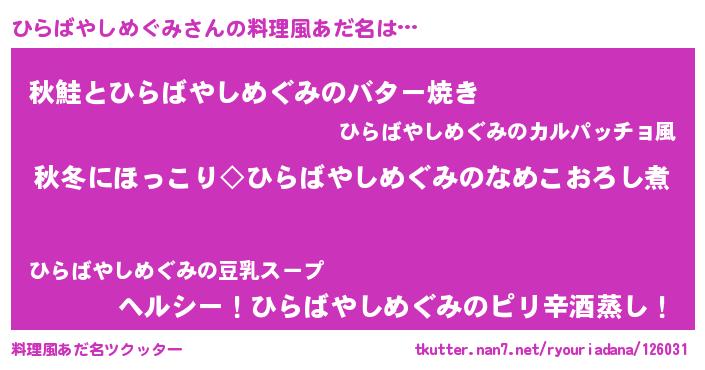 | ヘコむあだ名 | 『ひらばやしめぐみ(笑)』『ひらを』 |