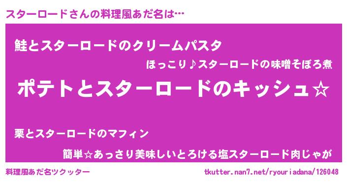 | 男性向けラノベタイトル風あだ名 | 『スターロードの嫁は女の子じゃないと思った?』 |
