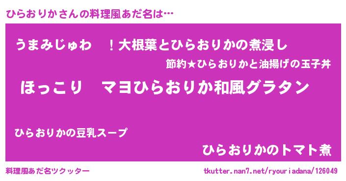 | 意味不明あだ名 | 『住所不定無職ひらおりか(79歳)』 |
