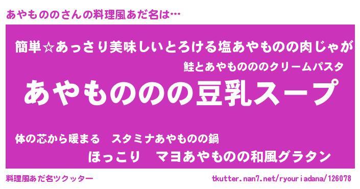 | 意味不明あだ名 | 『とにかく怪しいあやものの』 |
