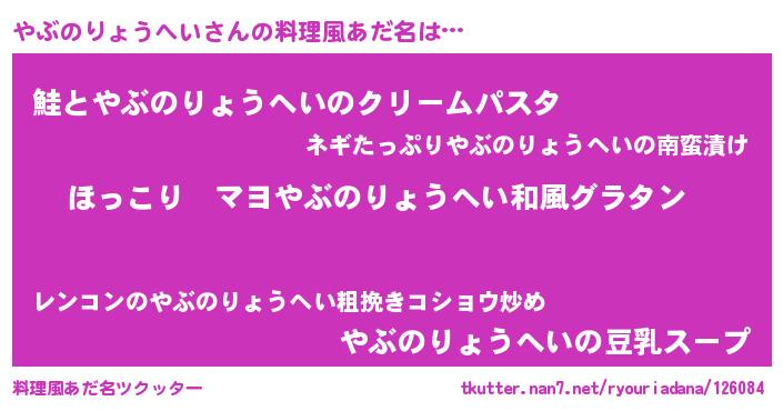| 男性向けラノベタイトル風あだ名 | 『この素晴らしい世界にやぶのりょうへいを!』 |