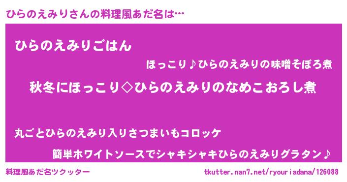 | ヘコむあだ名 | 『ひらぷりん』『ひらっふぃ~』 |