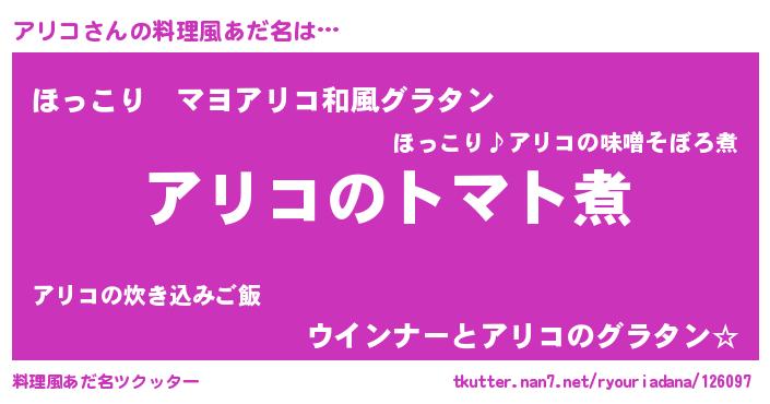 | 女子向けラノベタイトル風あだ名 | 『アリコ夫妻のなれそめ』 |