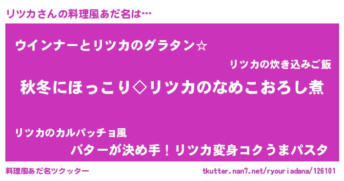| ポケモン風あだ名 | 『リツゴンZ』『リツカダネ』 |