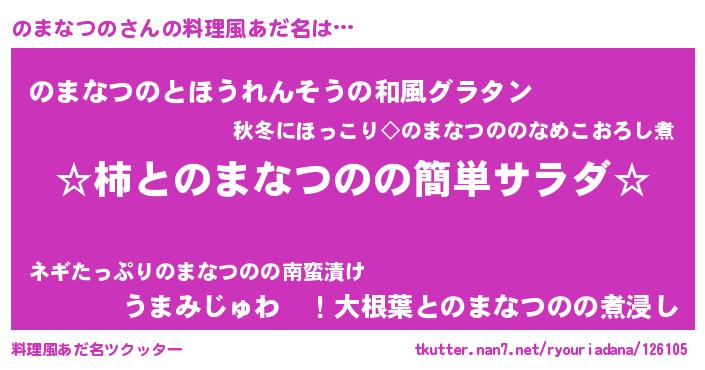 | 意味不明あだ名 | 『なめこ科のまなつの属』 |