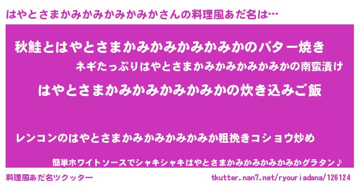 | 男性向けラノベタイトル風あだ名 | 『うちのはやとさまかみかみかみかみかが世界を掌握している!』 |