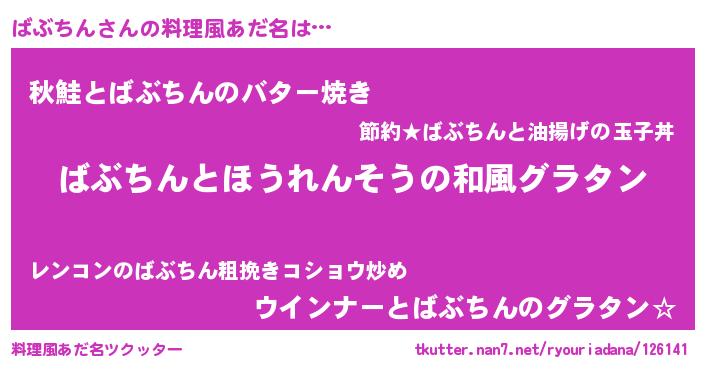 | ヘコむあだ名 | 『ばぶちん(震え声)』『なまこ酢』 |
