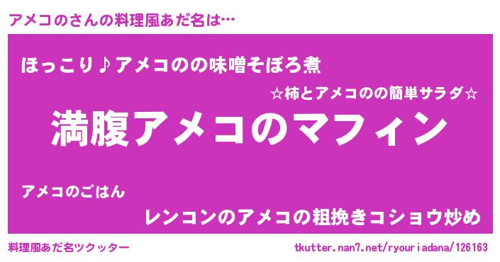| ヘコむあだ名 | 『アメコの(震え声)』『アメふぇ~』 |