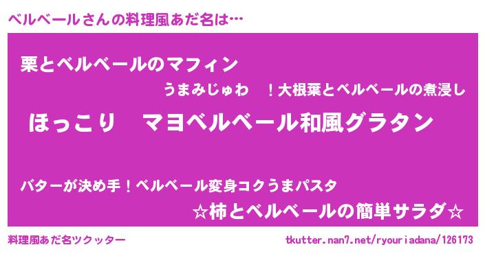 | 男性向けラノベタイトル風あだ名 | 『この素晴らしい世界にベルベールを!』 |