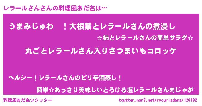 | ポケモン風あだ名 | 『レーライ』『レラーダネ』 |