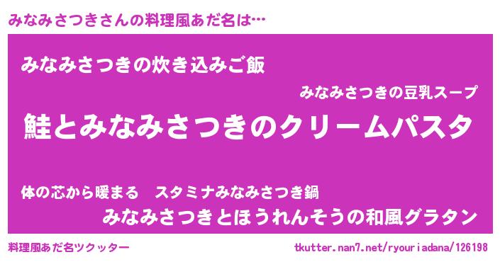 | 女子向けラノベタイトル風あだ名 | 『死神みなみさつきの再婚』 |