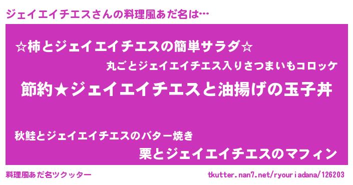 | ヘコむあだ名 | 『ジェふぇ~』『ジェイエイチエス(爆)』 |