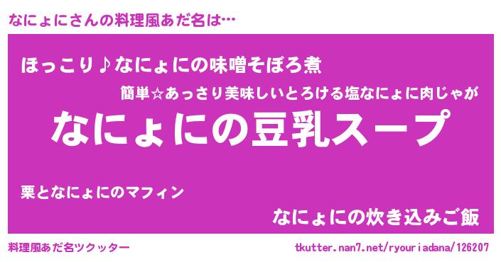 | 胡散臭い通販商品みたいなあだ名 | 『信頼と実績のサプリメント…その名も「なにょに」』 |
