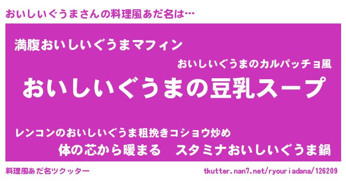 | 意味不明あだ名 | 『とにかく怪しいおいしいぐうま』 |