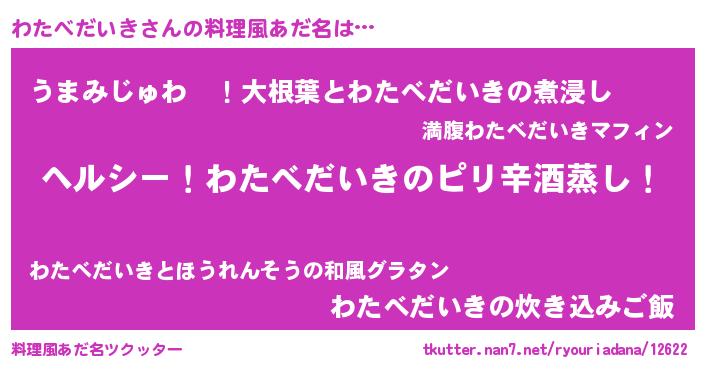 | 男性向けラノベタイトル風あだ名 | 『Re:わたべだいきから始める異世界生活』 |