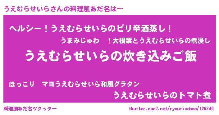 | 意味不明あだ名 | 『自称うえむらせいら』 |