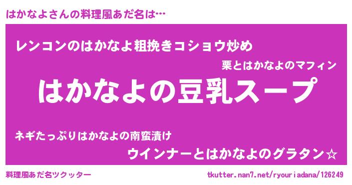 | 意味不明あだ名 | 『とにかく怪しいはかなよ』 |