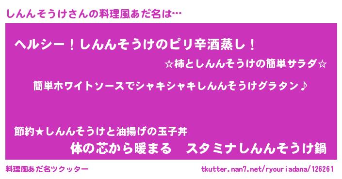 | 意味不明あだ名 | 『とにかく怪しいしんんそうけ』 |