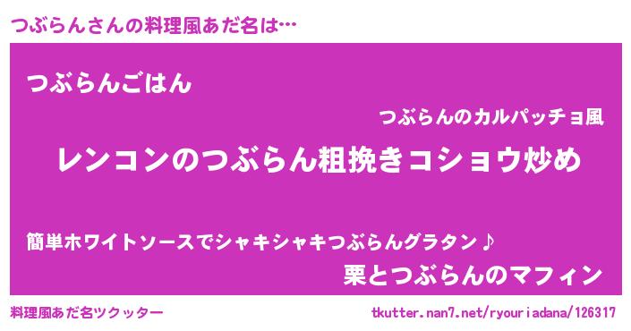 | 可愛いあだ名 | 『つぶうちぇる』『つぶぷりん』 |