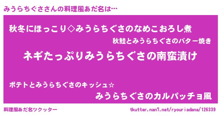 | ヒーロー風カッコイイあだ名 | 『スーパーミウラチグサ』『仮面ミウダー』 |