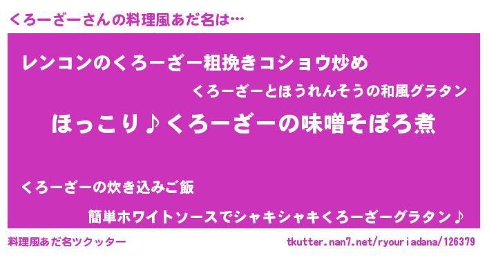 | 意味不明あだ名 | 『ペロリンくろーざー』『自称くろーざー』 |