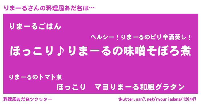 | ヘコむあだ名 | 『りまにー』『りまっ子』『なまこ酢』 |