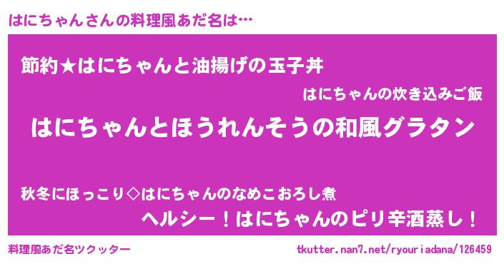 | 意味不明あだ名 | 『ニラ科はにちゃん属』『自称はにちゃん』 |
