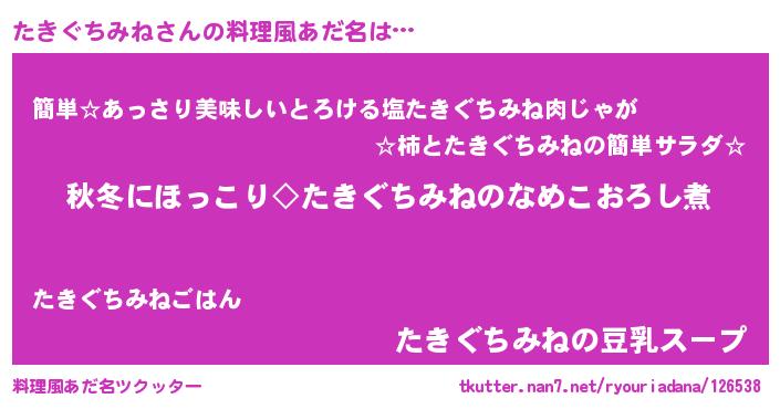 | 意味不明あだ名 | 『永久保存たきぐちみね』 |