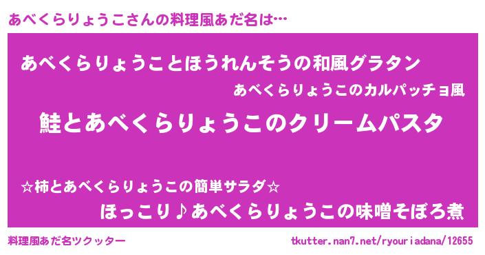 | 男性向けラノベタイトル風あだ名 | 『ノーゲーム・ノーアベクラリョウコ』 |