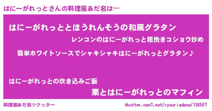 | 意味不明あだ名 | 『とにかく怪しいはにーがれっと』 |