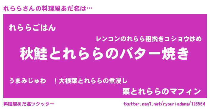 | ヘコむあだ名 | 『れらら(遠い目)』『豆乳』『れらお』 |