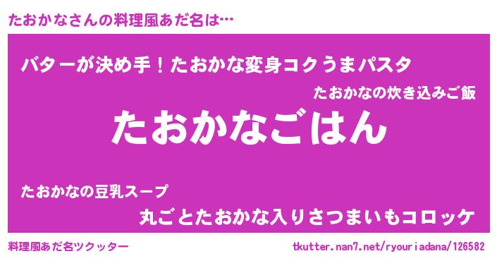 | 意味不明あだ名 | 『たけのこ科たおかな属』『自称たおかな』 |