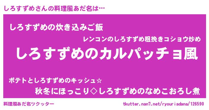 | 意味不明あだ名 | 『住所不定無職しろすずめ(10歳)』 |