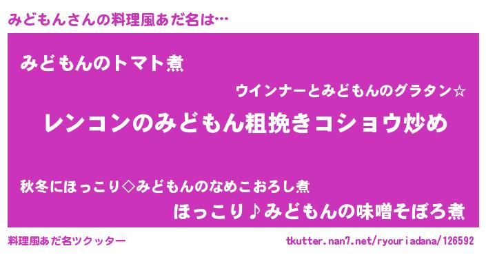 | 胡散臭い通販商品みたいなあだ名 | 『テレビで話題のアガリクス…その名も「みどもん」』 |