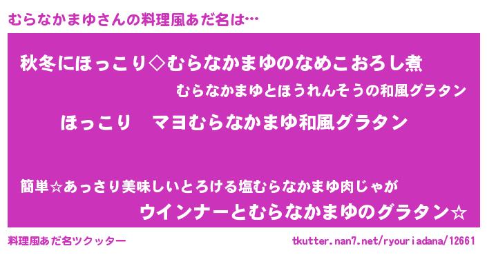 | 男性向けラノベタイトル風あだ名 | 『この素晴らしい世界にむらなかまゆを!』 |