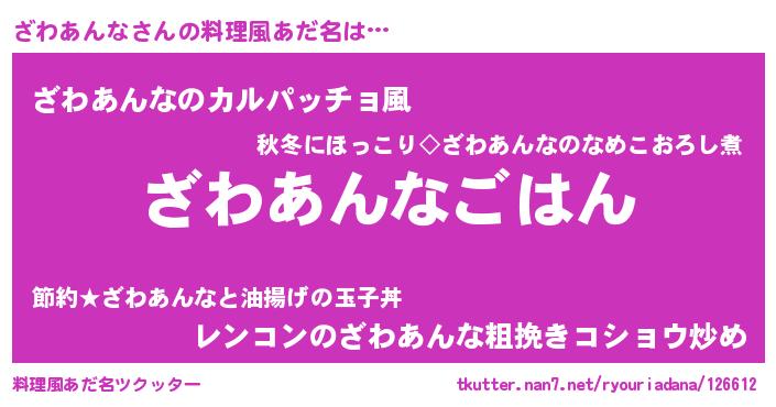 | ヒーロー風カッコイイあだ名 | 『仮面ザワダー』『超時空戦士ザワアンナ』 |