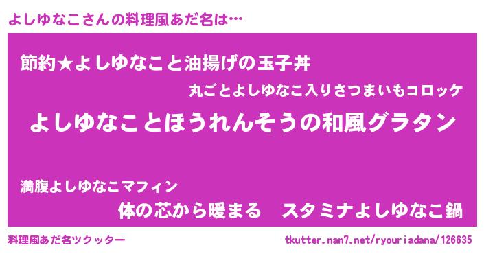 | 肩書あだ名 | 『よしゆなこ大将』『よしゆなこ社長令嬢』 |
