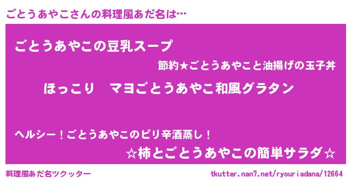 | 男性向けラノベタイトル風あだ名 | 『この素晴らしい世界にごとうあやこを!』 |