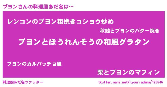 | 意味不明あだ名 | 『ニラ科ブヨン属』『自称ブヨン』 |