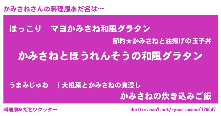 | 女子向けラノベタイトル風あだ名 | 『かみさねの玉の輿計画!』 |