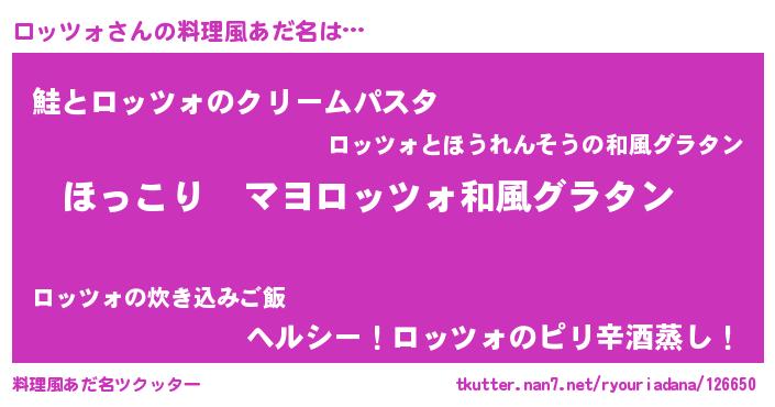 | 男性向けラノベタイトル風あだ名 | 『この素晴らしい世界にロッツォを!』 |