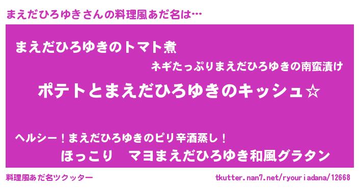 | 女子向けラノベタイトル風あだ名 | 『まえだひろゆきの卵を拾いまして』 |