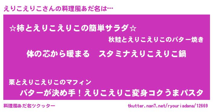 | 男性向けラノベタイトル風あだ名 | 『やはりえりこえりこの青春ラブコメはまちがっている 』 |