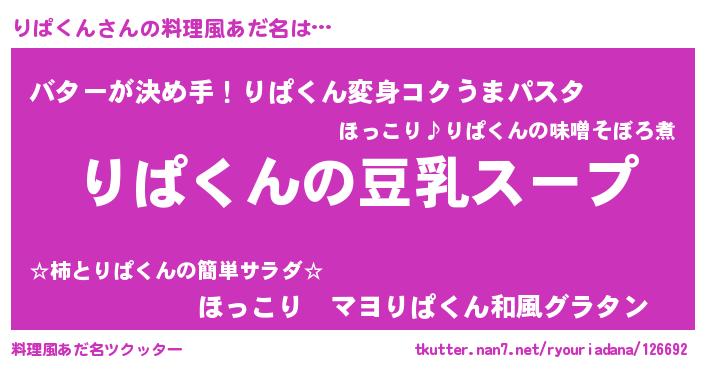 | 女子向けラノベタイトル風あだ名 | 『りぱくんは平凡を望む』 |