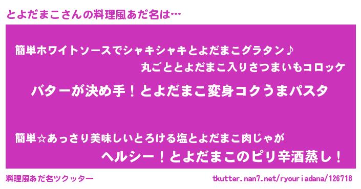 | 女子向けラノベタイトル風あだ名 | 『とよだまこ恋絵巻』『闇のとよだまこ』 |