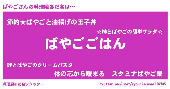 | 意味不明あだ名 | 『めかぶ科ばやご属』『ペロリンばやご』 |
