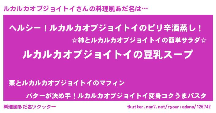 | 意味不明あだ名 | 『とにかく怪しいルカルカオブジョイトイ』 |